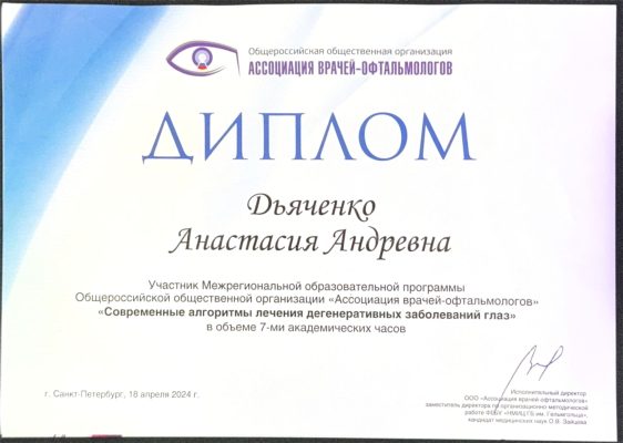 Диагностика и лечение заболеваний переднего отрезка глаза, а также диагностика заболеваний сетчатки и зрительного нерва.