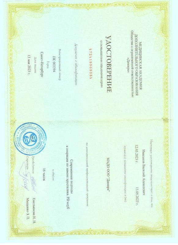 - рефракционная замена хрусталика