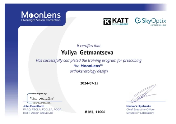| 2024 год | обучение по подбору ортокератологических линз MoonLens |