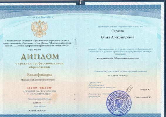 • 2014 г, медицинский колледж им С.П. Боткина (лечебное дело)
