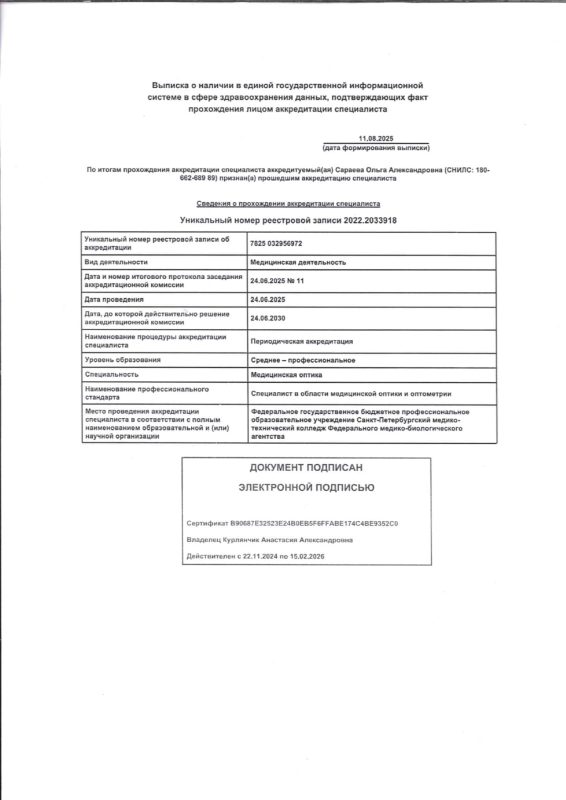 • Специалист в области коррекции зрительных нарушений, таких как миопия, гиперметропия, астигматизм