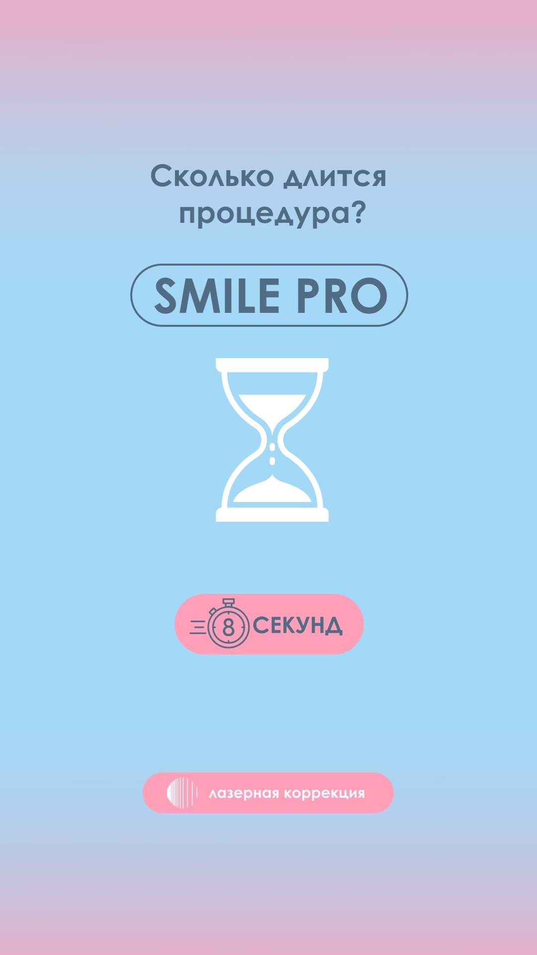 - С помощью технологии SMILE pro операция проходит быстро и безопасно, а восстановление требует минимума времени.