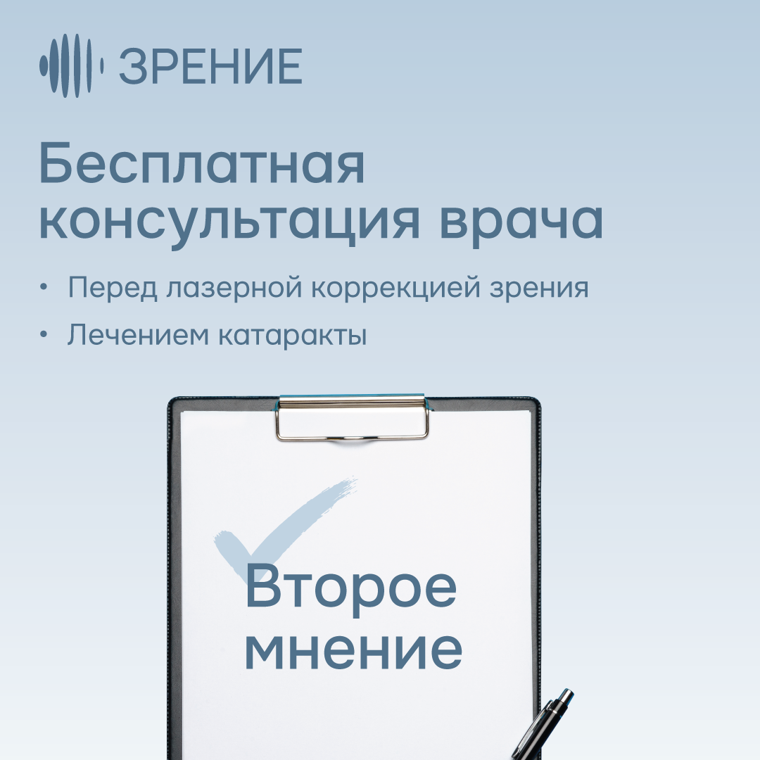 Получите независимую экспертную оценку вашего случая бесплатно* в клинике «Зрение» и будьте уверены в правильности своего выбора.